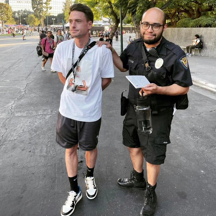 Officer Badger. We casted Frank Castillo to play our reimagined breakbeat cop. He protected our attendees from mids, shit-rolled joints, and gave out free Puffco products along with a Puffcon Violation notice.